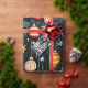 Christmas ornaments hang decoratively from a green boughed holiday tree. So brightly coloured and festive. And we can see through the foliage to another yellow-topped decorated pine tree close by, visible in the night sky. Just magical in this retro design. All of the text on this return address label is editable, including the "Merry Christmas" greeting. Be sure you change the example family name and address entries to those of your choice.