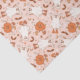 This design showcases a delightful retro vintage Halloween pattern with a playful and nostalgic vibe. The background is a soft peachy pink, providing a warm and muted canvas for the design. The pattern features animated ghosts and pumpkins with expressive faces, all dressed up and in action, reminiscent of classic cartoon characters. The ghosts are depicted in various dynamic poses, while the pumpkins are shown with arms, legs, and exaggerated facial expressions, adding to the vintage charm.