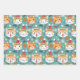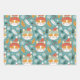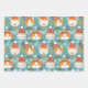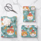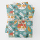 The three sheets are each a bit different, but all from similar retro pattern illustrations. Little orange and white cat faces topped with colourful Santa hats amidst assorted holiday decorative elements. The teal background indicates the set of three will be a compatible grouping for your gift giving. We think the per lovers you know will be happy that they are on your winter holiday list.