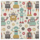 Fun Retro Robots Illustrated Pattern (Cream) Fabric
