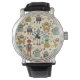 Fun Retro Robots Illustrated Pattern (Cream) Watch