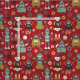 Fun Retro Robots Illustrated Pattern (Red) Fabric