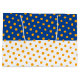 This festive design features tiled golden yellow polka dots against wide horizontal vivid royal blue and white colour block halves.