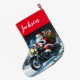 Fun Santa Claus Riding a Motorcycle Large Christmas Stocking