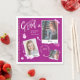 Fun scrapbook photo album notebook then and now grad napkins. The design is made to resemble a spiral notebook. Add your grad photo's to this fun photo doodle scrapbook. We've also designed fun stickers and arrows to create a fun doodle photo album. Personalize with grad's name, school, and graduation year. Designed by Moodthology Papery.