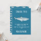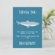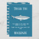 A fun shark features in this underwater themed ocean party thank you card for a boy or girl of any age. The back features a matching shark pattern. Personalise by changing the name and text to suit your celebration.