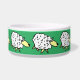 Dog bowl for a sheep dog. Pattern of fun cartoon style sheep in a row. Sheep dog bowl.