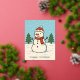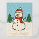 Cute foil Christmas postcard with a fun snowman illustration with the editable greeting "Happy Holidays".