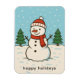 Cute Christmas magnet with a fun snowman illustration with the editable greeting "Happy Holidays".