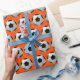 Fun Soccer Ball Pattern on Orange Wrapping Paper