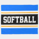 This sporty, fun design features athletic SOFTBALL text inside a highlighted wide black centre stripe with double white and yellow racing stripes against bright blue outer stripes. The text and colours in this design can be personalised.