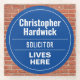 Fun Commemorative Style Wall Plaque Gift in the form of a Glass Coaster for a Solicitor. Blue and white plaque. Edit the design to change the wording to suit the gift recipient.