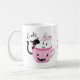 A fun spooky cute personalised Halloween mug featuring a black cat and a ghost chilling in a pink jack-o-lantern cup . The text reads "Freshly boo'd coffee" , but you can change it with your own . Perfect for coffee , tea or hot cocoa .