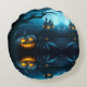 Fun Spooky Decor with Pumpkins,Ghosts & Witch Hats Round Cushion