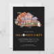 Invite friends to you halloween costume party in style , with this stunning halloween invitation feacturning spooky monsters with a crooked spooky house on a black background ideal for any childs costume party.