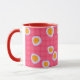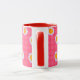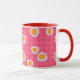 Fun spots on a coral pink chequered background mug