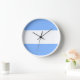 Fun Stylish Chic Light Blue White Nautical Stripes Clock