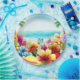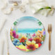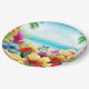 This paper plate has a fun design for summer featuring a beach scene with flowers, butterflies, palm trees and the beach and ocean in the background. This would be great to use for any summer party or picnic.