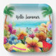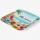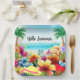This paper plate has a fun design for summer featuring a beach scene with flowers, butterflies, palm trees and the beach and ocean in the background. This would be great to use for any summer party or picnic. The text on the plate is customisable so you can personalise it for a special party, celebration or event.