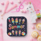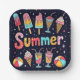 Bright and colourful popsicles, ice cream cones, and refreshing drinks are arranged around the word "Summer," creating a lively and festive atmosphere