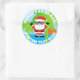 Fun summer Santa Claus cartoon tropical Christmas Classic Round Sticker. Funny Holiday design with cool Santa Claus in sunglasses and tropical beach palm tree sunset. Add your own personalised greeting, funny quote, name etc. Happy Holidays!