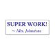 This encouraging rubber stamp design features the positive message "SUPER WORK!" and a personalised educator name. It could be used by a teacher, educator, or tutor when marking assignments, to acknowledge that the student has done well.