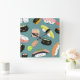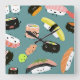 Fun Sushi Characters on Teal (Customisable) Square Wall Clock