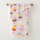Fun Sweet Cupcake Dessert Pattern on Pink Bath Towel Set