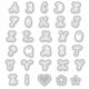 Fun swirly silver colour font typography monogram capital text letters alphabet sticker pack for monogramming, personalising, customising, note writing, journals, notebooks, and more. This set also includes an exclamation point, heart, flower, and star.