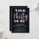 Celebrate your big 30 in style with this playful “Talk 30 to Me” 30th birthday party invitation. Designed to bring fun and excitement to your milestone event, this unique invitation features bold typography and a modern layout, making it the perfect way to invite your friends and family to a celebration they won't forget. Whether you're hosting a casual gathering, a lavish dinner, or an unforgettable night out, this invitation captures the spirit of the occasion.