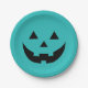 Fun teal jack o lantern pumpkin face Halloween Paper Plate