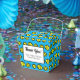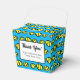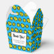 Fun tennis party favour box with custom text. Cute tennis ball pattern design. Great for kid's Birthday party, club gathering, team celebration etc. Custom blue background colour.