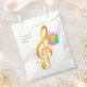 A fun, colourful favour bag with gold coloured musical treble clef note with paint splatters effect that just stands out on black. So easy to personalise with your choice of text at no extra cost.