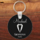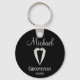 fun tuxedo with bow groomsman personalised black grey chic keychain, two sided.