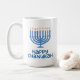 Two-sided printing with this Fun typography Happy Chanukah 15oz Mug with Colourful Menorah. Modern fun design. Dishwasher and Microwave Safe. Designed for 15 oz mug / 11 oz mug is also available.