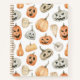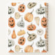This design features a charming watercolor pattern of pumpkins and jack-o'-lanterns in a soft, muted colour palette. The design includes various pumpkin shapes and sizes, painted in gentle shades of orange, cream, and grey. Each jack-o'-lantern has a unique carved face, ranging from happy and friendly to slightly spooky, adding character and variety to the pattern. The pumpkins are arranged on a clean, white background, allowing the delicate watercolor textures to stand out. The overall design is both festive and adorable, perfect for capturing the whimsical spirit of Halloween in a cosy, artistic way.