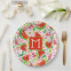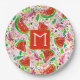 Fun Watermelon and Floral Pattern Monogram Paper Plate