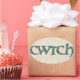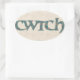 Mail a Welsh 'cwtch' to your loved ones! A sheet of oval stickers with the Welsh word 'cwtch', meaning 'cuddle' or 'hug' in a Celtic script, filled with a Paisley pattern on a linen-effect background.