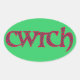 Fun Welsh Cwtch Stickers: Red, Green Pattern Oval Sticker
