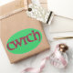 Mail a Welsh 'cwtch' to your loved ones! A sheet of oval stickers with the Welsh word 'cwtch', meaning 'cuddle' or 'hug' in a Celtic script, filled with a bright red and green pattern on a green background (which you can change if you wish).