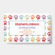 Fun cute rainbow coloured paw print patterned design for dog walking and pet sitting. Purple, blue, green-yellow, orange and red patterned dog paw prints design on a white background. Great for dog walkers, pet sitters, groomers or just dog lovers!