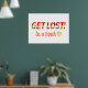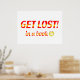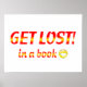 Have some fun and also spread the word about books and reading with this bright design with the smiley face and the words Get Lost! in a book.