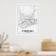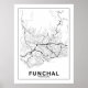 Funchal Map In Portugal, classic black and white style with details of the streets and roads. Ideal for modern and minimalist decoration.