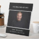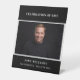 With the text: Celebration of life. Personalise and add a photo, name and dates. A classic black background, white text.