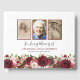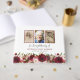 Floral book of condolence (memorial guestbook) featuring 3 photos of your loved one, a red marsala, burgundy & blush pink watercolor flower display, and a personalised text template with their their name and dates.