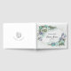 Floral funeral guest book with customisable text. Flowers in a wreath pattern on a white background.