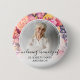 The perfect button for friends and family to wear at a funeral with an image of your loved one and the words "in loving memory" and their name. The design features a bright watercolor floral design.