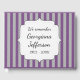 This guestbook design features purple and grey stripes, along with a personalised name and birth/death years. It could be used to record attendees of a funeral, and all of the great memories they have of the recently deceased individual.