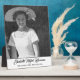 A funeral or memorial photo plaque featuring a single photo.