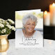 A simple folded thank you card features a your loved one's photo on the front with their name and birth-death dates. The inside features a sample message on the right side you can use or change to your own words and room to add any additional information on the left side. Beautiful for custom thank you notes for your celebration of life, funeral or memorial. MATCHING items in our collection.